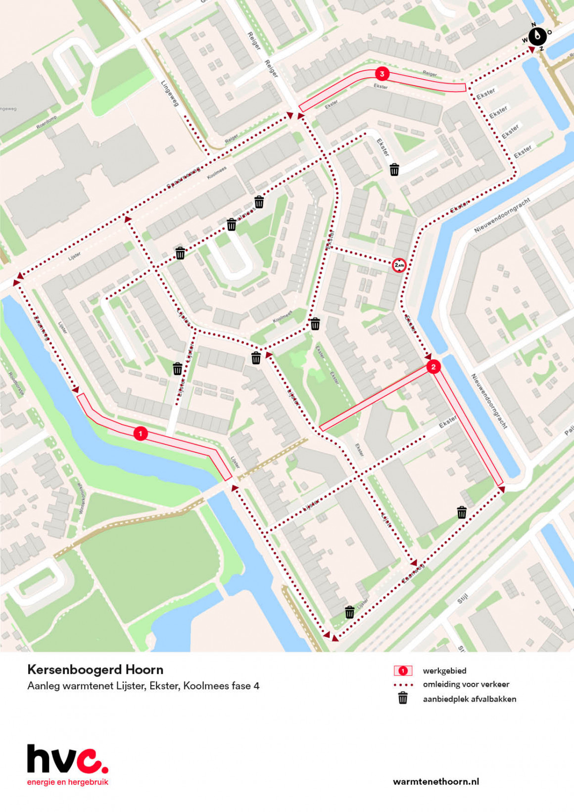 In opdracht van HVC legt aannemer MVOI het warmtenet aan in onderstaande werkgebieden: